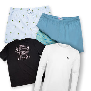This set includes one men’s swim trunk, one sport short, one sun shirt, and one t-shirt, four essential pieces designed to move seamlessly from beach days to workouts and everything in between. Each item works together to keep packing simple and outfits effortless, no matter how the day unfolds. Perfect for: active days, travel, everyday wear, and spontaneous plans.