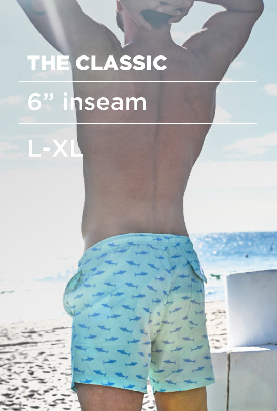 “The Classic“ swim trunk in L and XL sizes are 6 inches inseam.